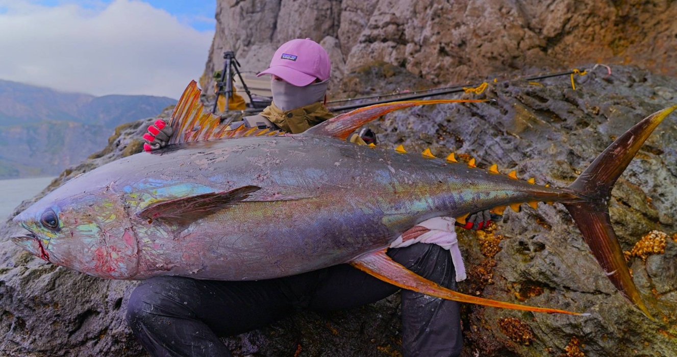 | 3月23日 松ケ下 キハダマグロ 55.7s のび子さん 釣り開始はずっとルアーを投げていました。 全くアタリありません。昼近くになりムロアジ がわさわさ接近してきます。ルアーに引っかかった ムロアジを泳がせてみると早速ヒット!のび子さん 1時間半にわたる延々の格闘。スタンデイングでの ファイト比較的小柄な女性ですが人並外れた体力 竿の角度、きれいなやり取りのフォームお見事です。 このサイズのキハダマグロを女性の方が獲るのは 記録じゃないでしょうか? |